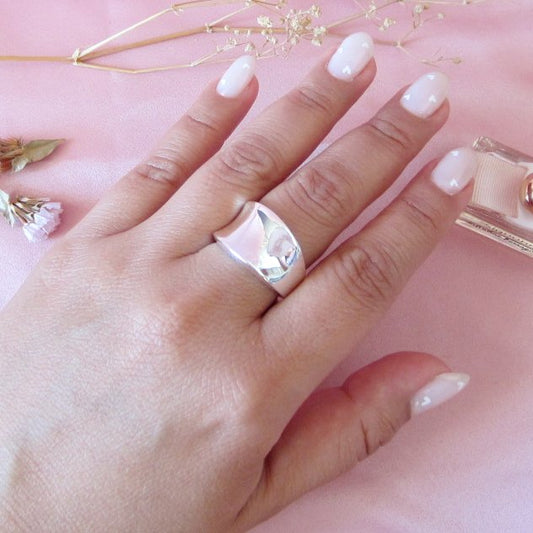 AgotadoAnillo Plateado Vaciado Ondas