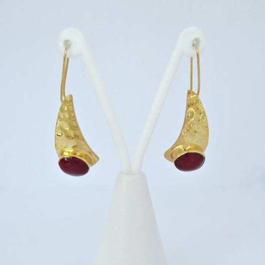 Arete Dorado Ala Martillada con Piedra