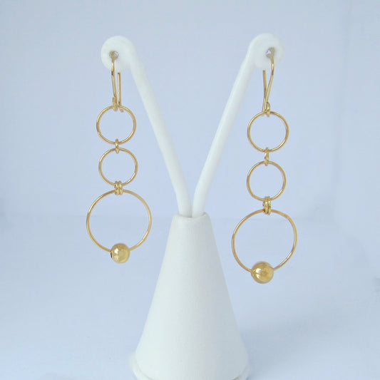 Arete Dorado Doble Círculo y Cuadrado