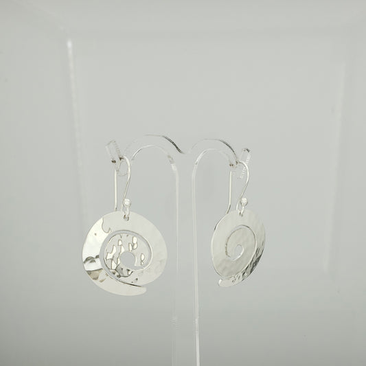 Arete plateado caracol martillado