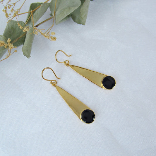 Aretes Dorado Gota Larga con Piedra