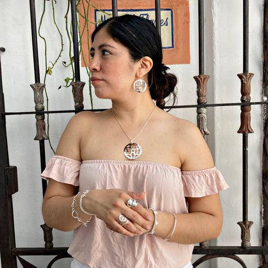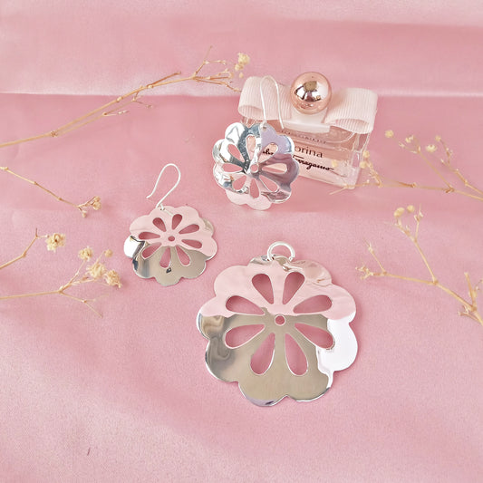 Juego Plateado Flor Calada Lisa