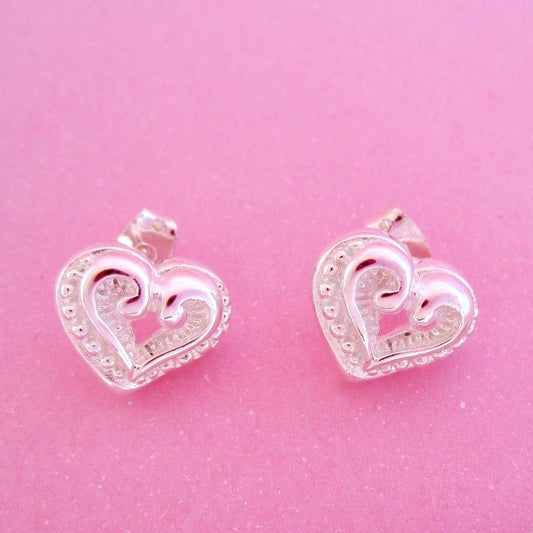 Aretes Mini Plateado Corazones Vintage