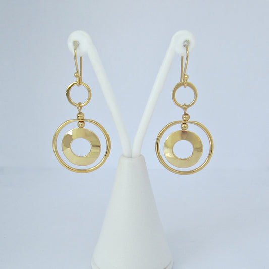 Arete Dorado Doble Círculo y Cuadrado
