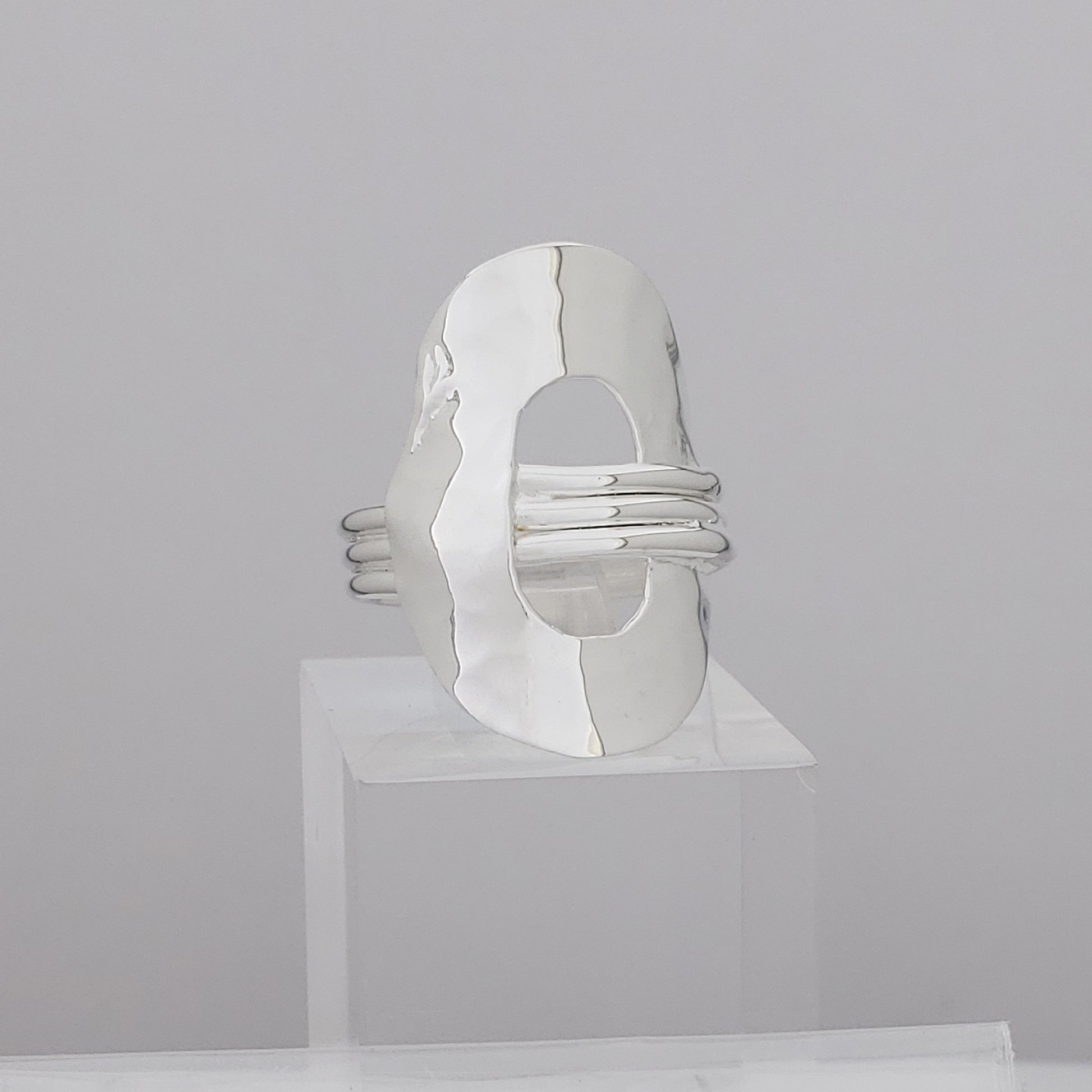 Silver oval ring with 3 wires.