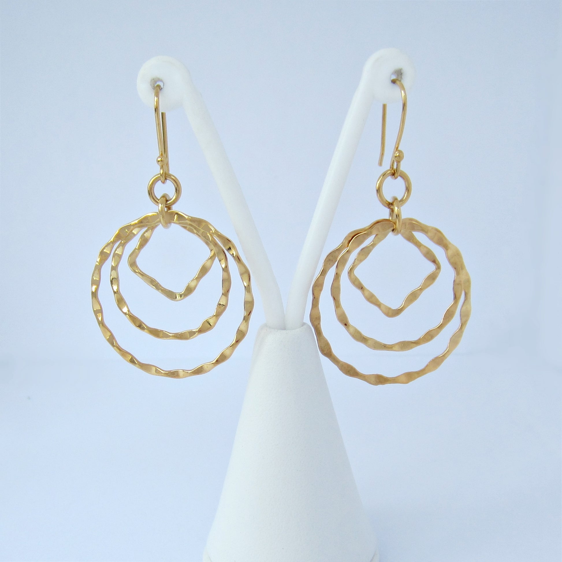 El arete dorado doble círculo y cuadrado es un arete bellísimo, está hecho de tres piezas de alambre texturizado que le da un look moderno y brillante, están unidas por una argolla para darles el movimiento perfecto, son la pieza perfecta para ser utilizados de día o de noche ¡Te encantarán!