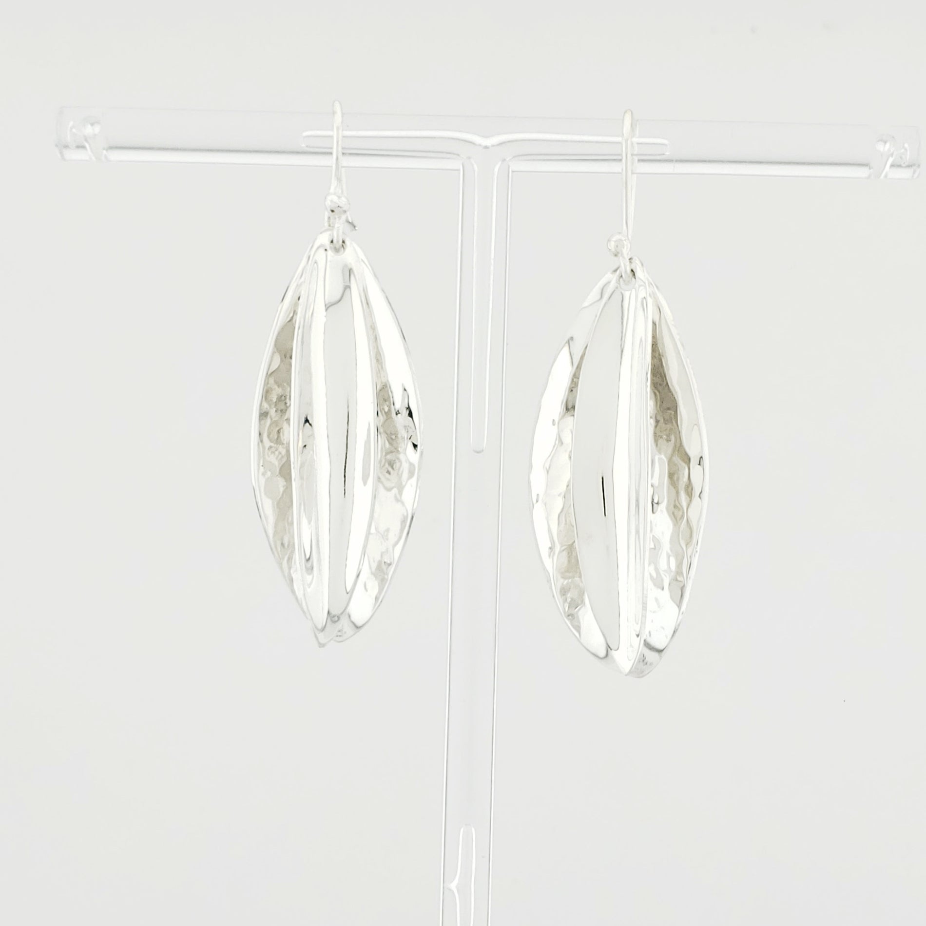 El arete plateado doble hoja, está formado por una hoja grande con textura martillada y al centro tiene una hoja lisa, tienen un hermoso brillo además de tener movimiento. Estos aretes tienen una elegancia tan exquisita que combinan con todo.