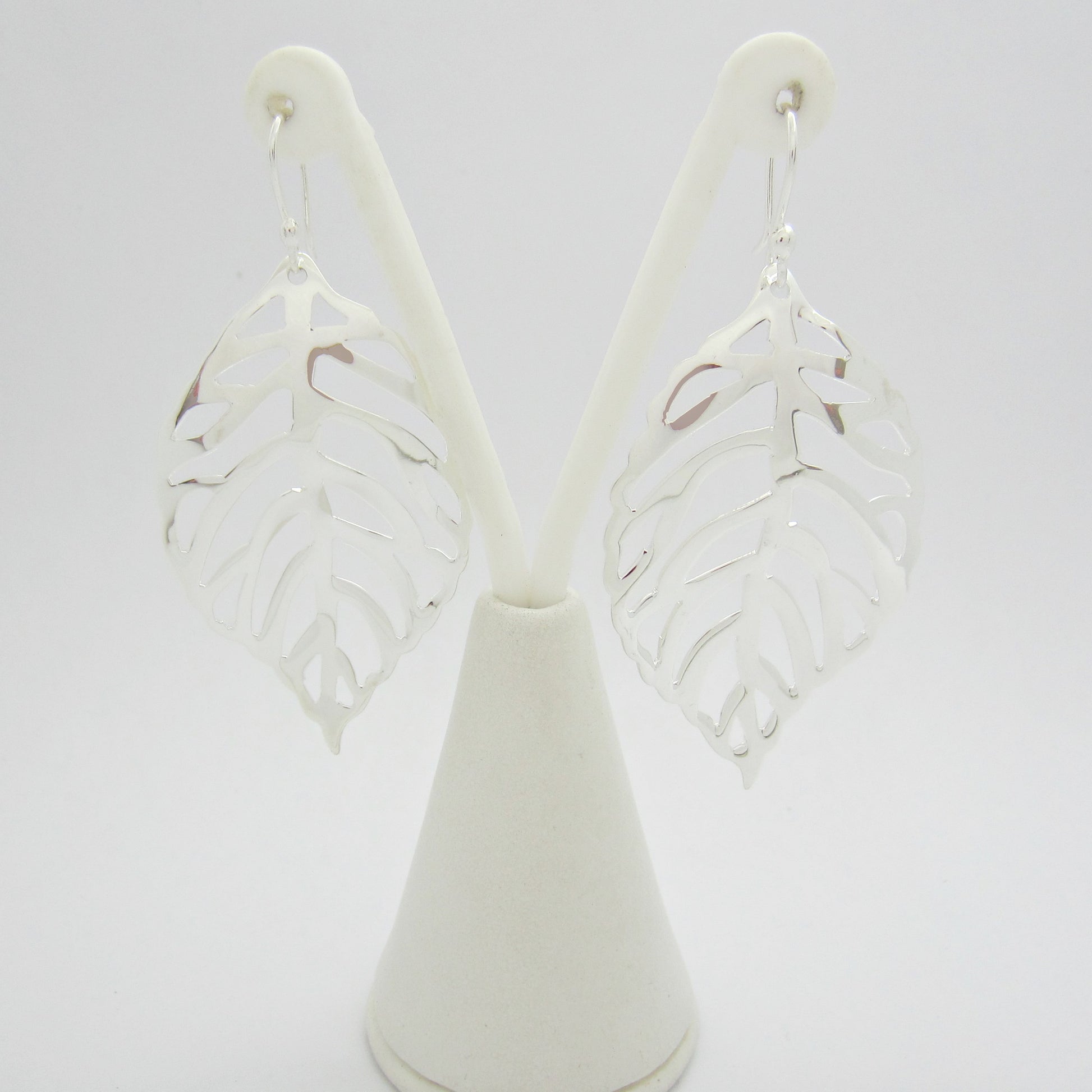Descubre la elegancia de estos aretes plateados con un diseño de hoja de otoño calado. Con un tamaño grande, resaltan la sofisticación en cada movimiento. Perfectos para completar un look exclusivo en cualquier ocasión.