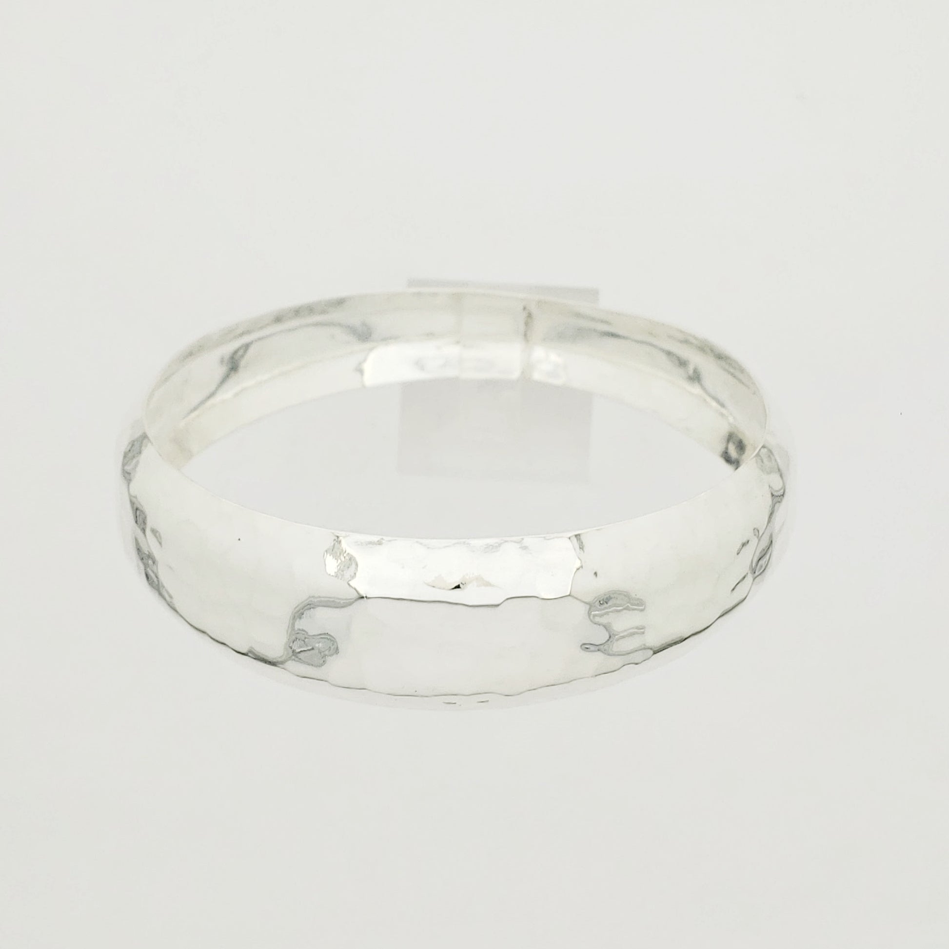 Aro plateado martillado sin sochapar. Este aro es muy sencillo pero su brillo y textura de martillado levanta mucho cualquier look.