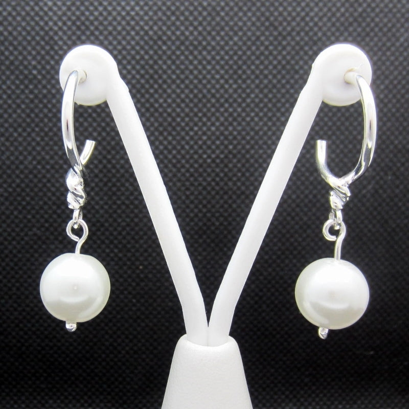 Arracada plateada con perla sintética colgante. Si te gustan las perlas, este es un modelo para ti. La combinación de arracada con perla es muy singular.