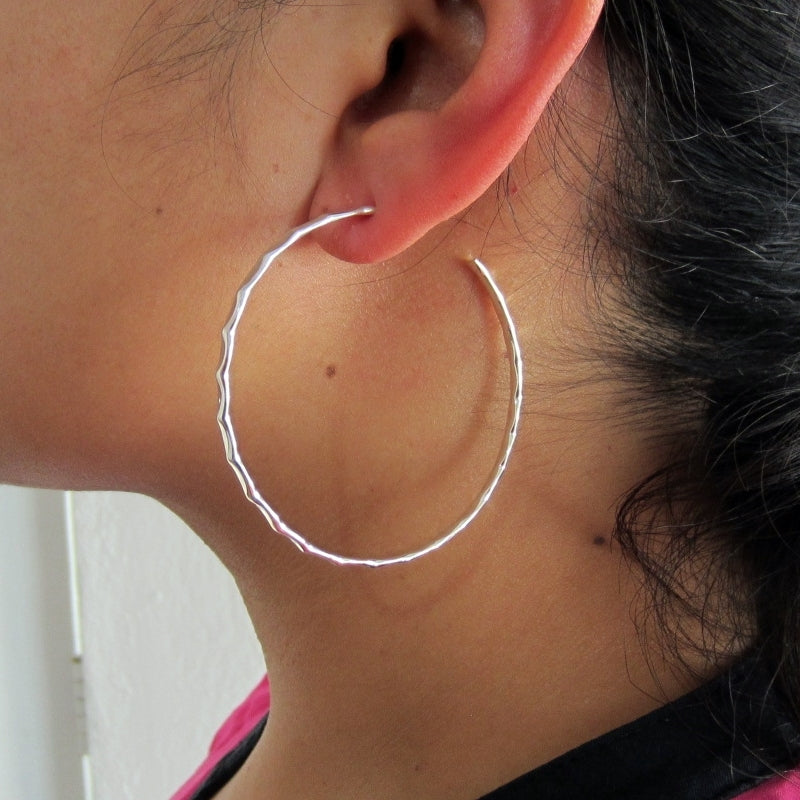 Arracada plateada extra grande cincelada. Estas arracadas las conozco como las de Selena Quintanilla. Son un clásico que debes de tener en tu joyero.