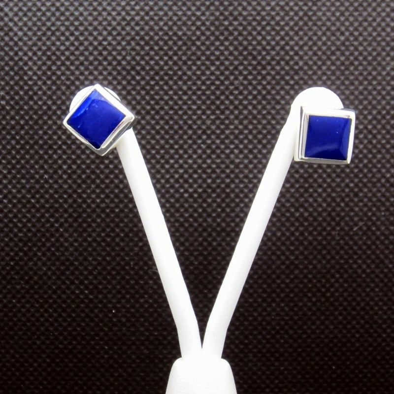 Broqueles plateados cuadrados con piedra sintética. Los broqueles son las piezas más sencillas, pero solo por su tamaño por que agregarle piedra tiene su grado de dificultad.